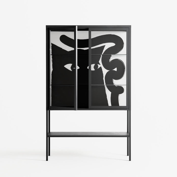 Vitrine pairs artworks by artists, designers, and creatives from around the world with a frame that elevates and displays them in everyday space. The cabinet is built from precision-cut metal with a powder-coated finish — resistant to wear and crafted for stability — making it ideal for both office and home spaces.