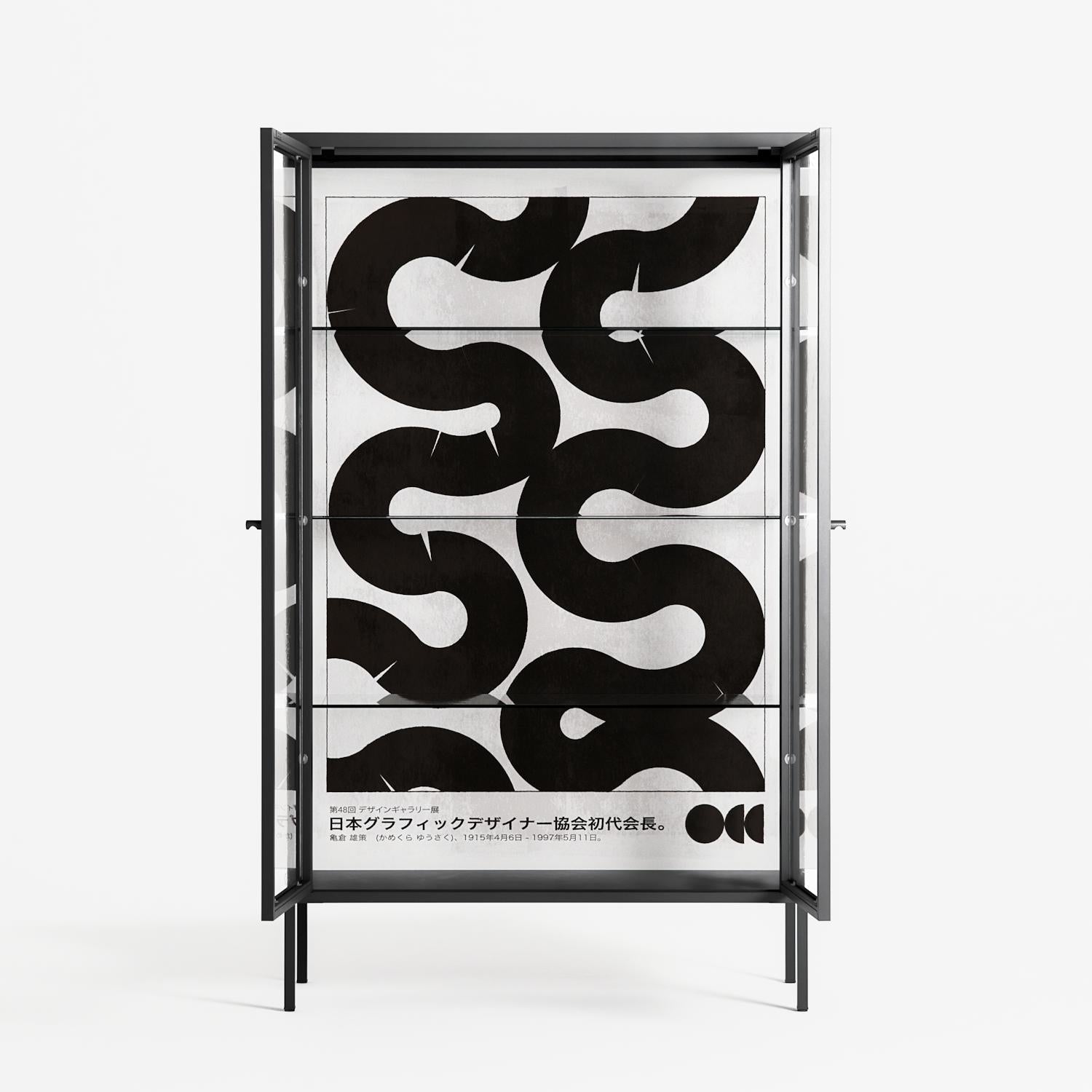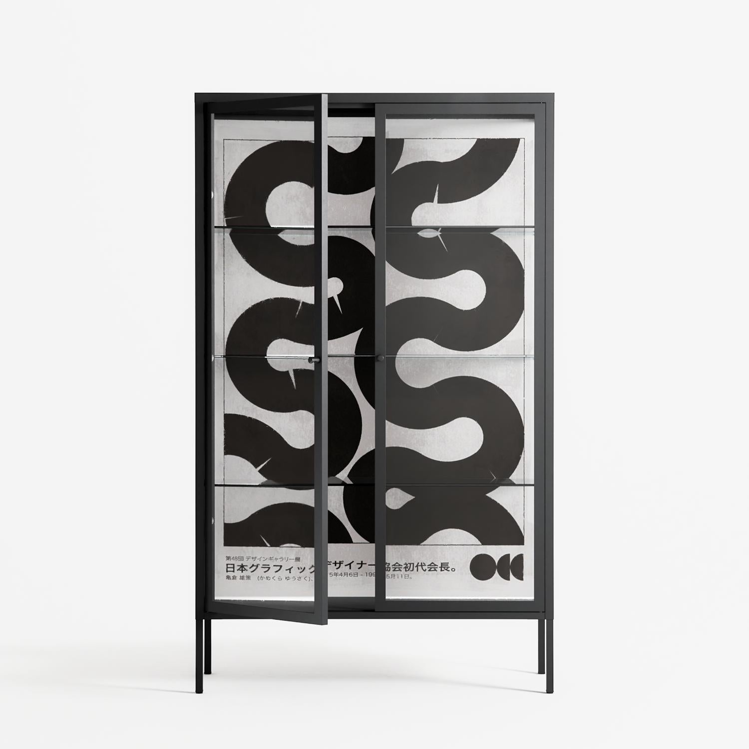 Vitrine pairs artworks by artists, designers, and creatives from around the world with a frame that elevates and displays them in everyday space. The cabinet is built from precision-cut metal with a powder-coated finish — resistant to wear and crafted for stability — making it ideal for both office and home spaces.