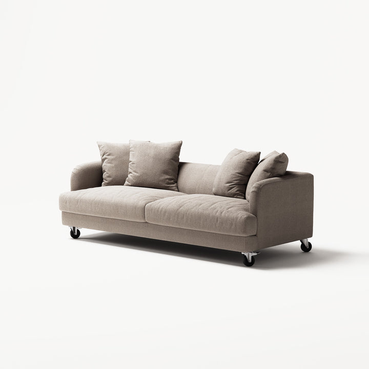 Harvey 3-seat sofa — generous comfort on wheels, ready to move whenever the moment asks for it. Reposition for conversation, redecorate for the moment, or a change of view — wheels with integrated brakes let you move freely, then lock in place.
