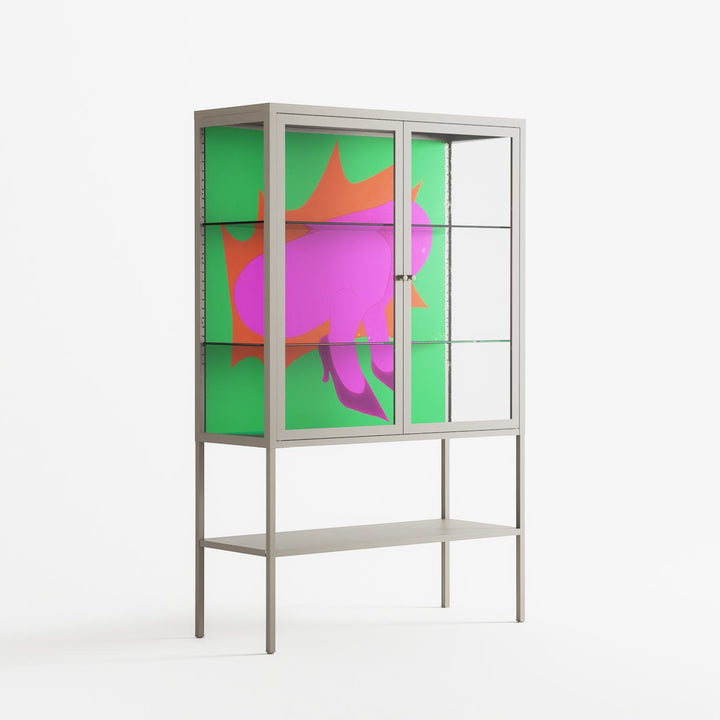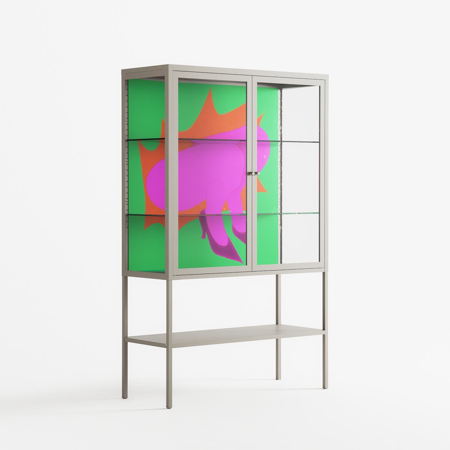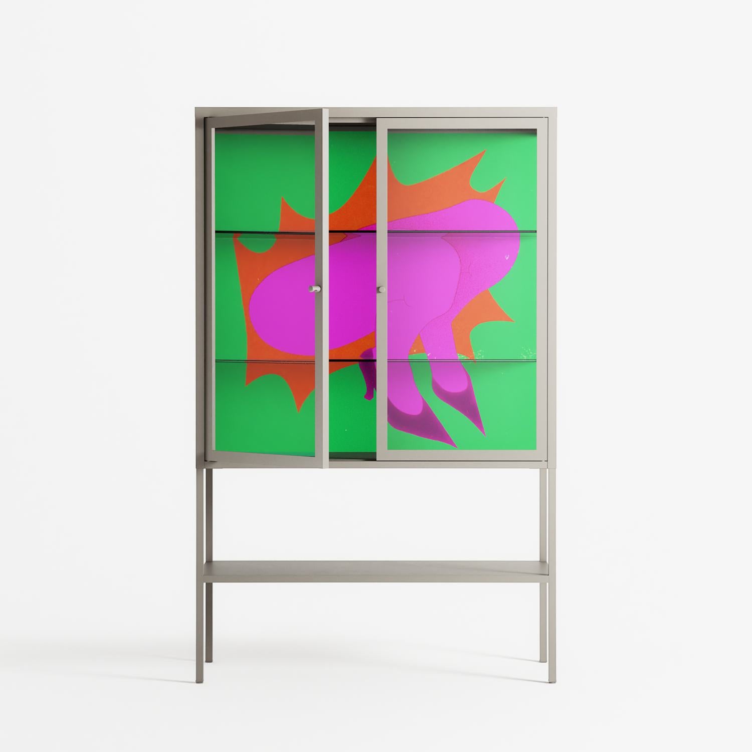 Vitrine pairs artworks by artists, designers, and creatives from around the world with a frame that elevates and displays them in everyday space. The cabinet is built from precision-cut metal with a powder-coated finish — resistant to wear and crafted for stability — making it ideal for both office and home spaces.