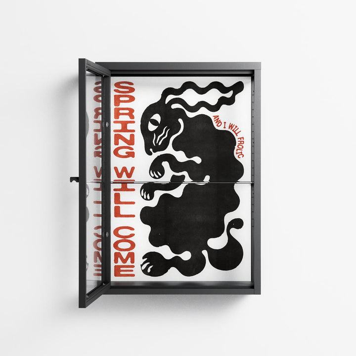 Spring Will Come by Alexander Khabbazi, displayed within the Vitrine Wall Cabinet behind Clear glass. Finished in the colour Antracite, the cabinet becomes a frame for the artwork and the objects within.