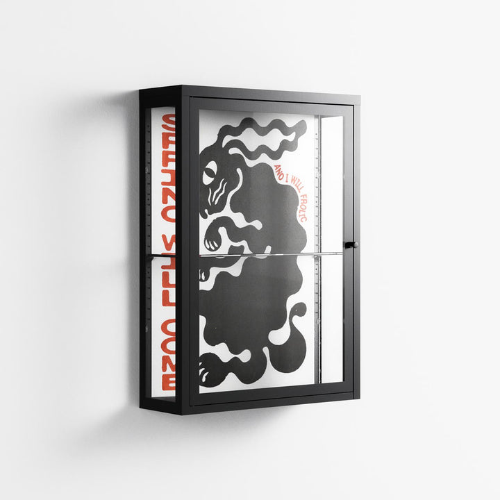 Vitrine pairs artworks by artists, designers, and creatives from around the world with a frame that elevates and displays them in everyday space. The cabinet is built from precision-cut metal with a powder-coated finish — resistant to wear and crafted for stability — making it ideal for both office and home spaces.