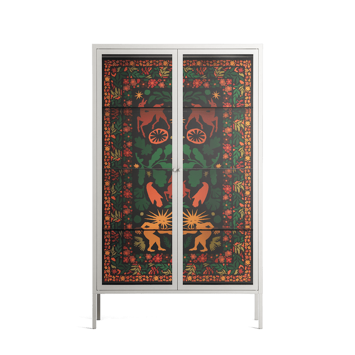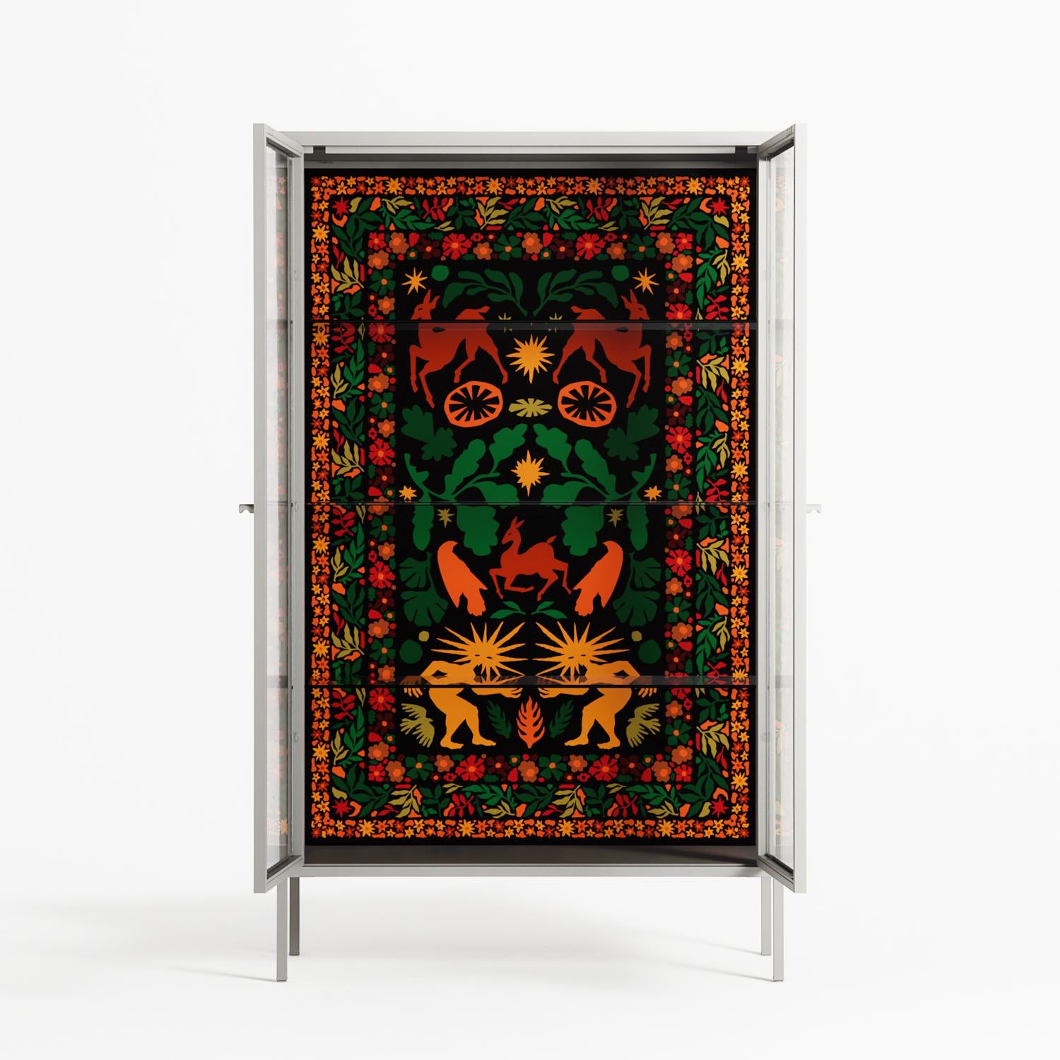 Vitrine pairs artworks by artists, designers, and creatives from around the world with a frame that elevates and displays them in everyday space. The cabinet is built from precision-cut metal with a powder-coated finish — resistant to wear and crafted for stability — making it ideal for both office and home spaces.