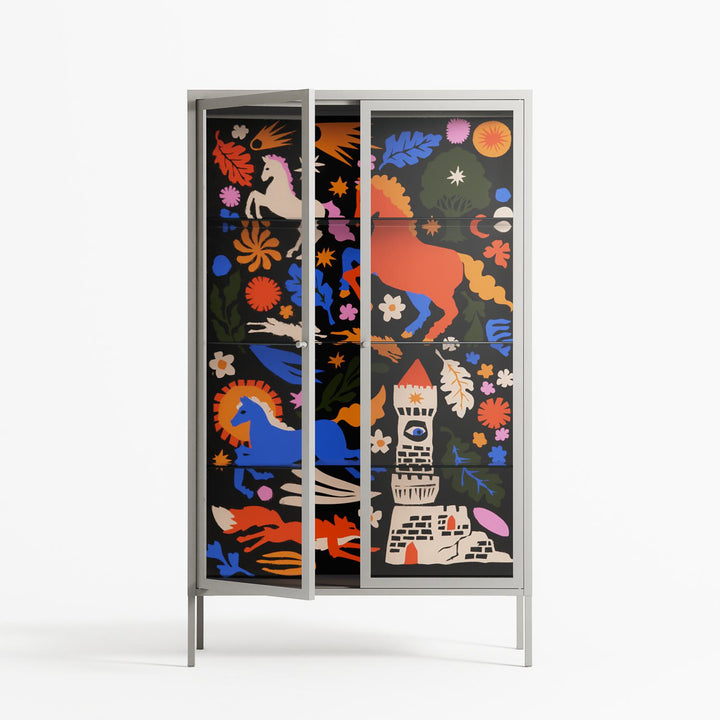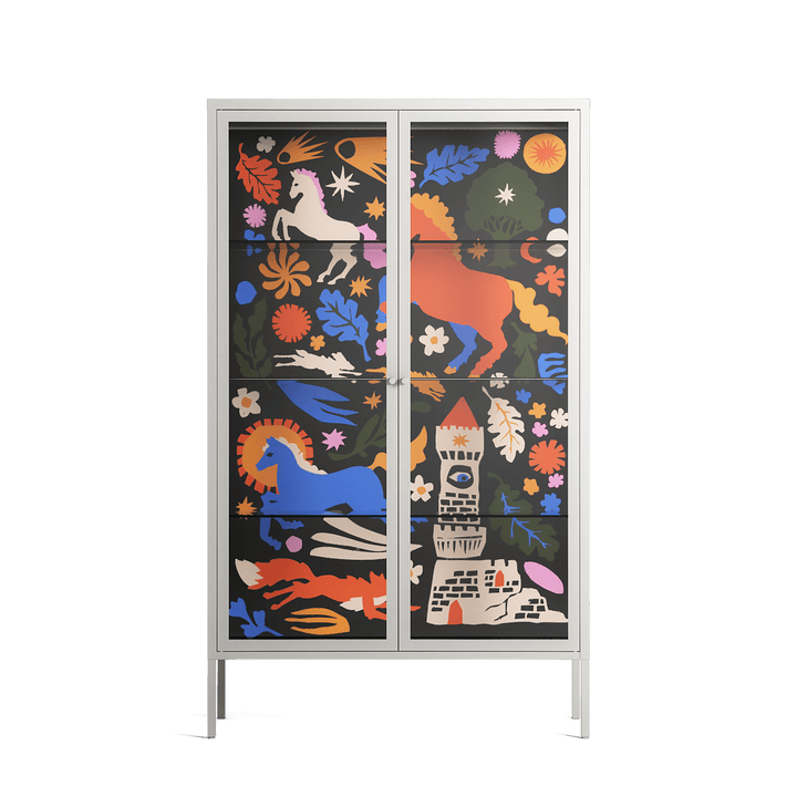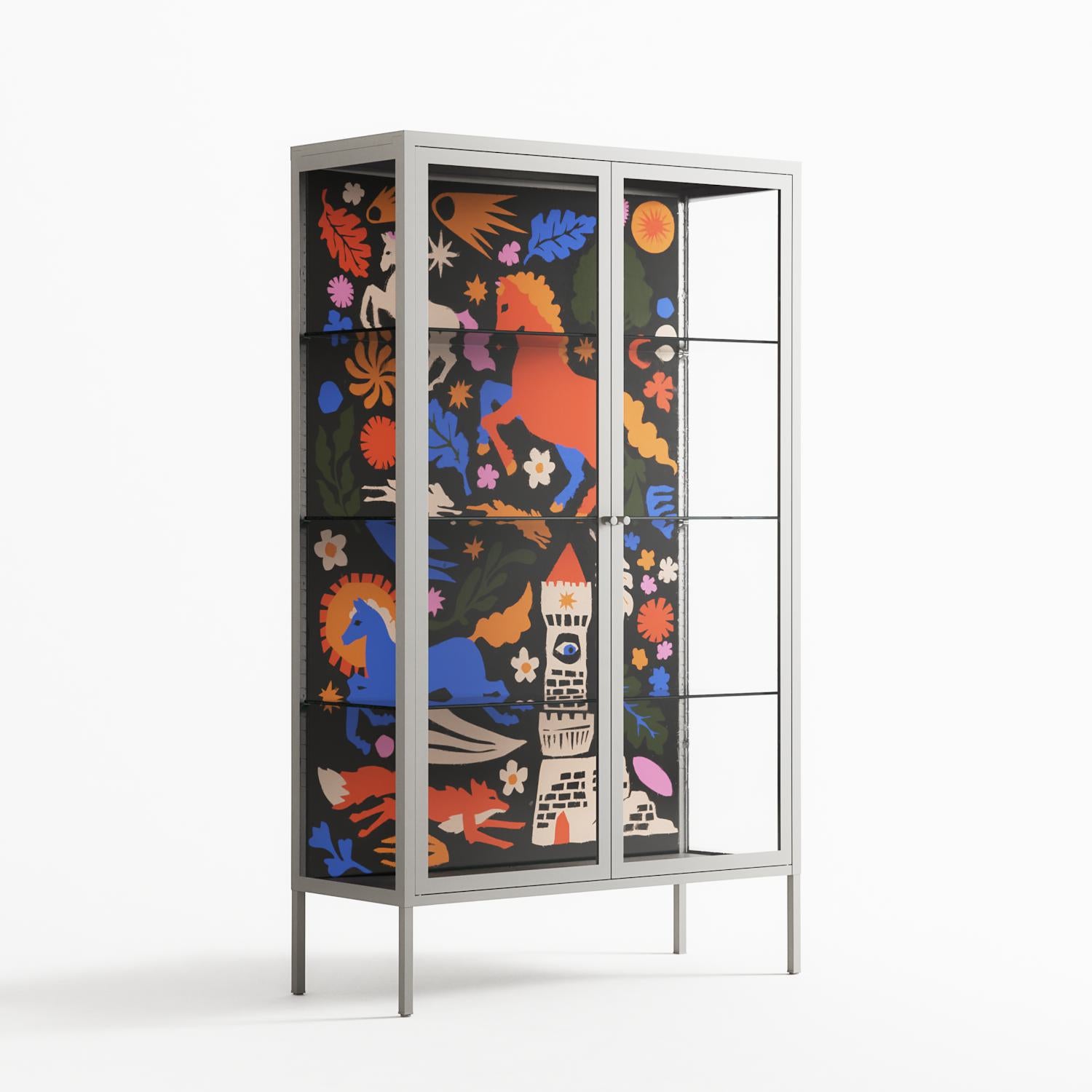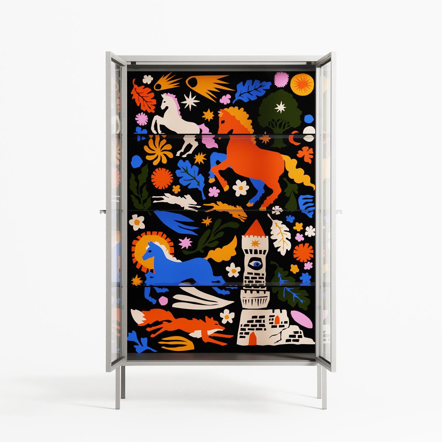 Vitrine pairs artworks by artists, designers, and creatives from around the world with a frame that elevates and displays them in everyday space. The cabinet is built from precision-cut metal with a powder-coated finish — resistant to wear and crafted for stability — making it ideal for both office and home spaces.