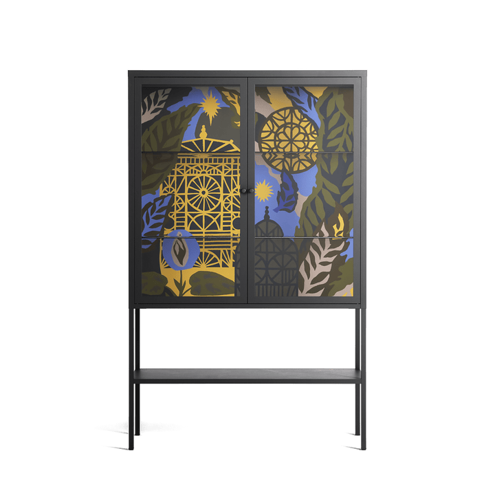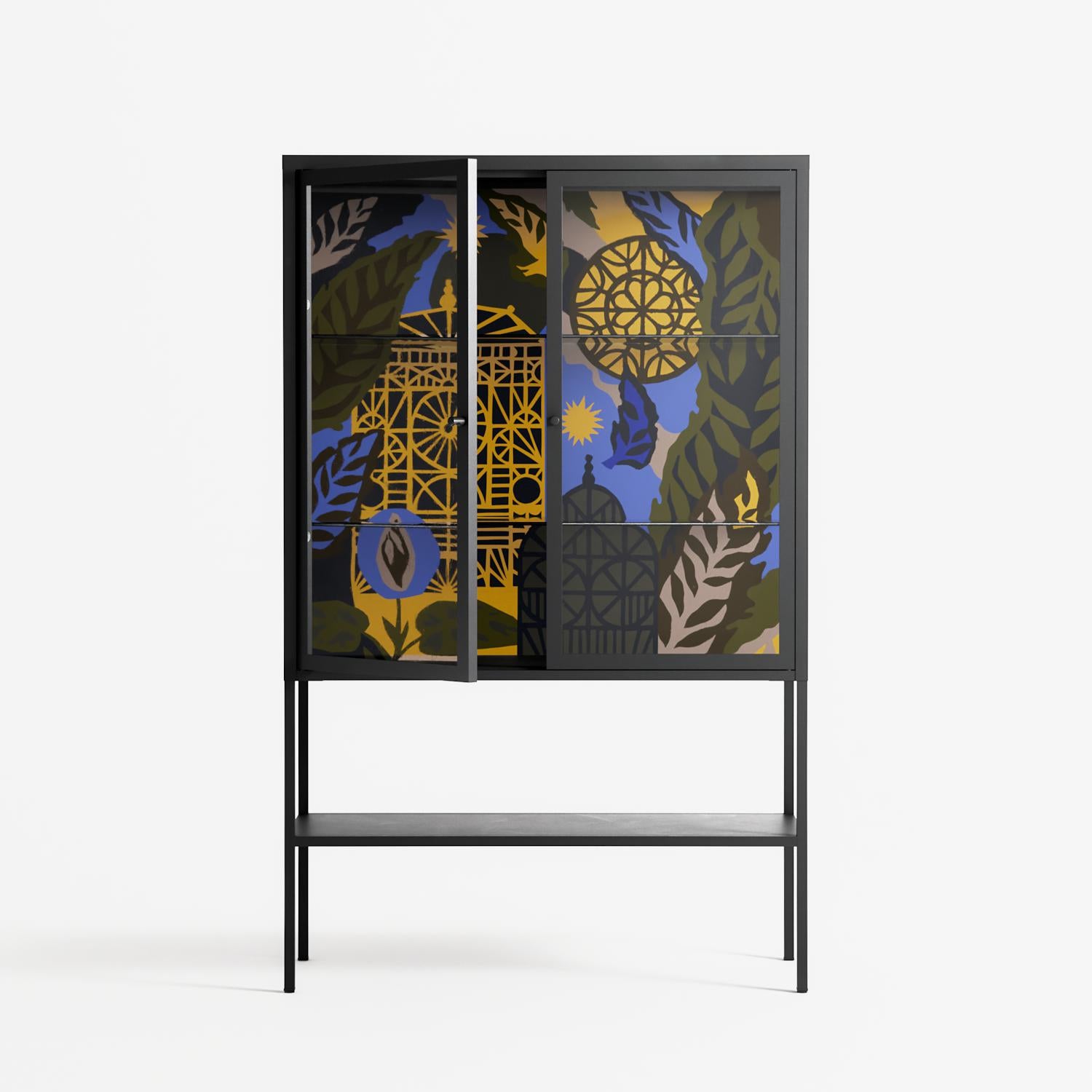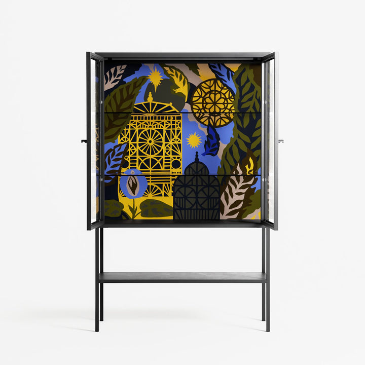 Vitrine pairs artworks by artists, designers, and creatives from around the world with a frame that elevates and displays them in everyday space. The cabinet is built from precision-cut metal with a powder-coated finish — resistant to wear and crafted for stability — making it ideal for both office and home spaces.
