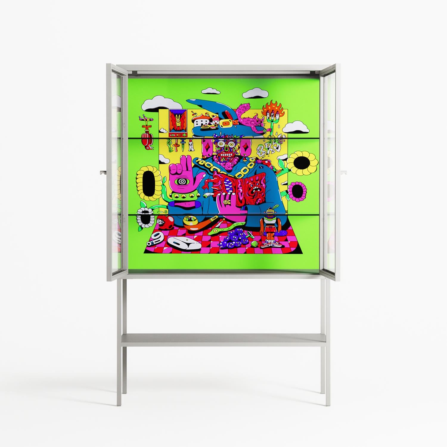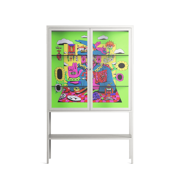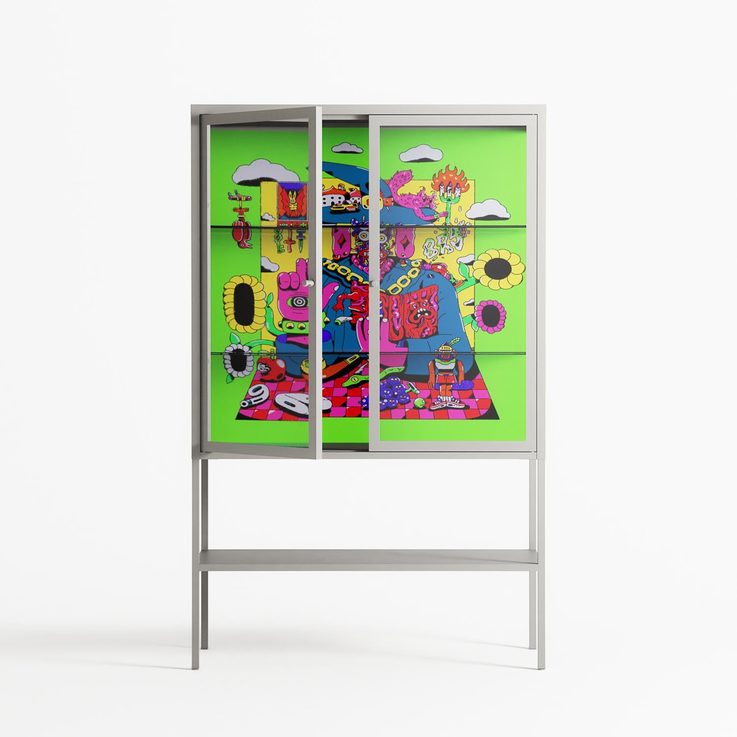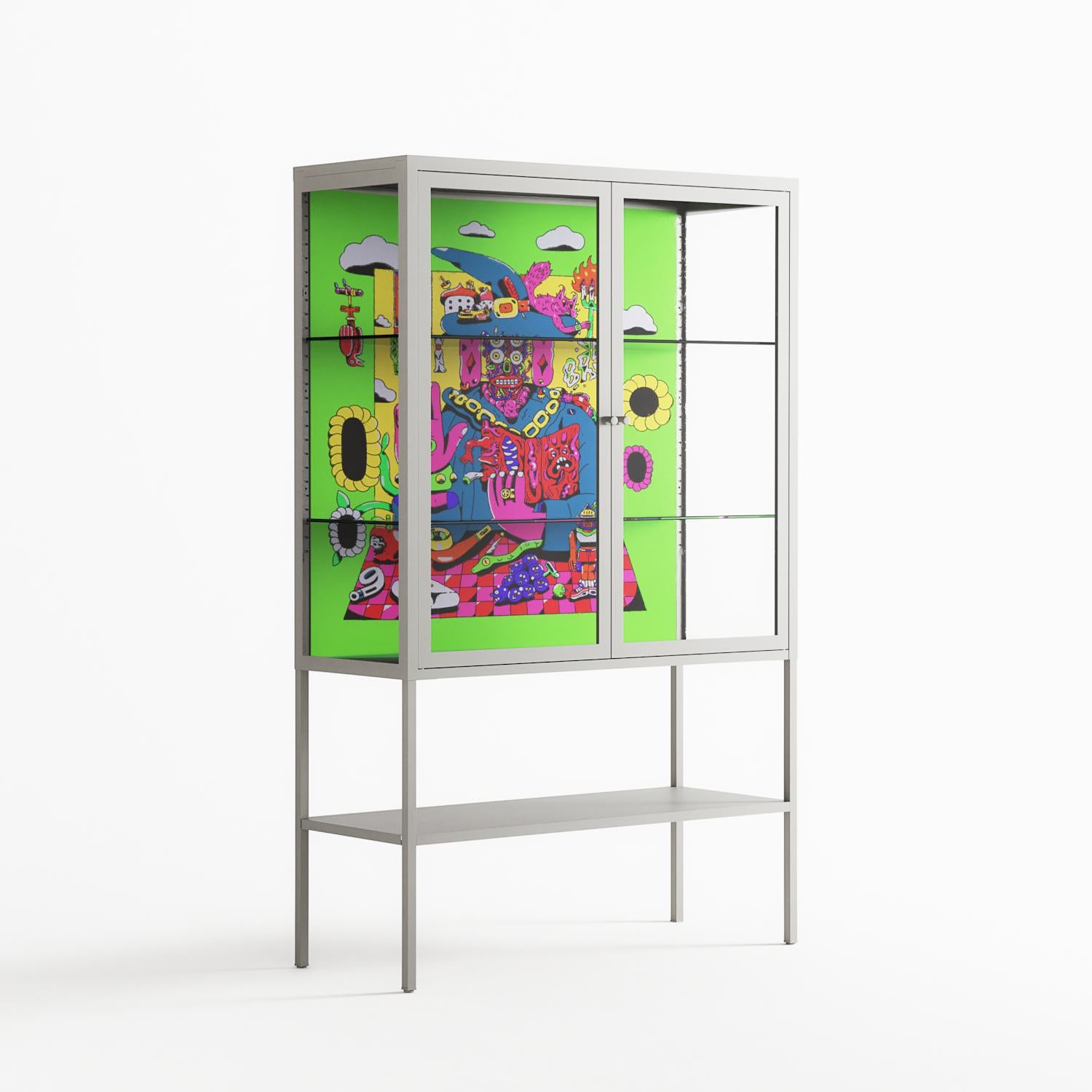 Vitrine pairs artworks by artists, designers, and creatives from around the world with a frame that elevates and displays them in everyday space. The cabinet is built from precision-cut metal with a powder-coated finish — resistant to wear and crafted for stability — making it ideal for both office and home spaces.
