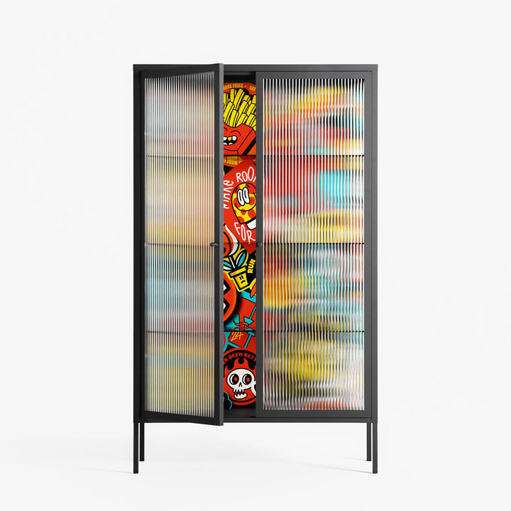 Vitrine pairs artworks by artists, designers, and creatives from around the world with a frame that elevates and displays them in everyday space. The cabinet is built from precision-cut metal with a powder-coated finish — resistant to wear and crafted for stability — making it ideal for both office and home spaces.