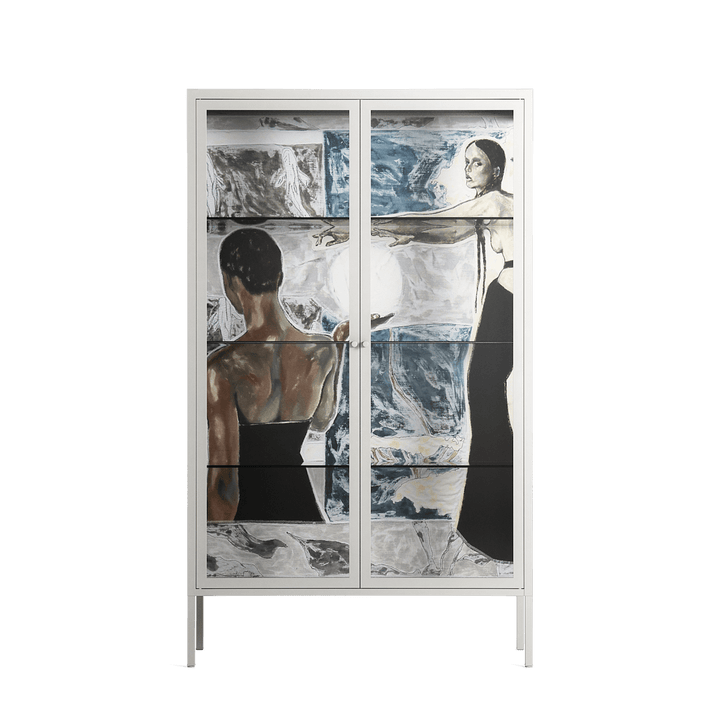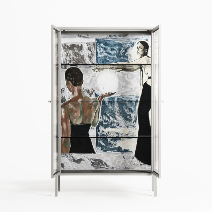 Vitrine pairs artworks by artists, designers, and creatives from around the world with a frame that elevates and displays them in everyday space. The cabinet is built from precision-cut metal with a powder-coated finish — resistant to wear and crafted for stability — making it ideal for both office and home spaces.