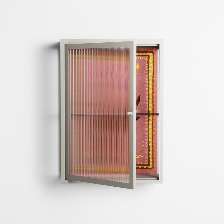 Vitrine pairs artworks by artists, designers, and creatives from around the world with a frame that elevates and displays them in everyday space. The cabinet is built from precision-cut metal with a powder-coated finish — resistant to wear and crafted for stability — making it ideal for both office and home spaces.