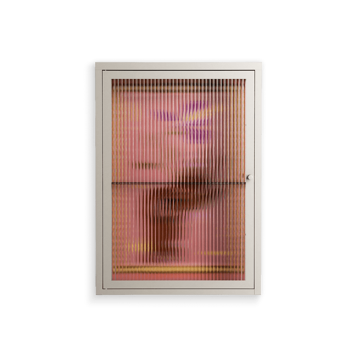 Connect With Nature by Raissa Oltmanns, displayed within the Vitrine Wall Cabinet behind Reeded glass. Finished in the colour Pebble, the cabinet becomes a frame for the artwork and the objects within.