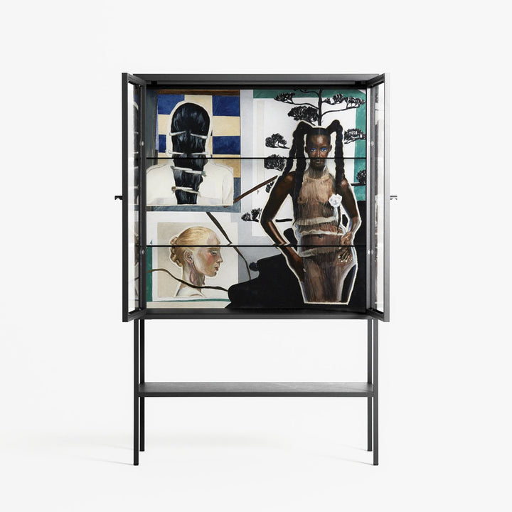 Vitrine pairs artworks by artists, designers, and creatives from around the world with a frame that elevates and displays them in everyday space. The cabinet is built from precision-cut metal with a powder-coated finish — resistant to wear and crafted for stability — making it ideal for both office and home spaces.
