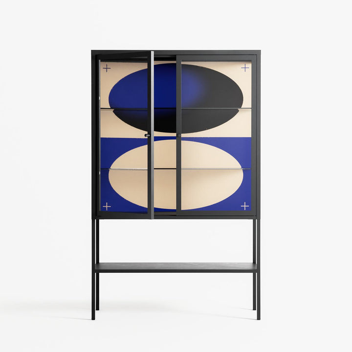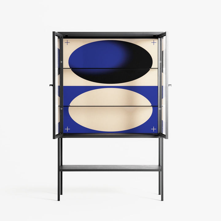 Vitrine pairs artworks by artists, designers, and creatives from around the world with a frame that elevates and displays them in everyday space. The cabinet is built from precision-cut metal with a powder-coated finish — resistant to wear and crafted for stability — making it ideal for both office and home spaces.