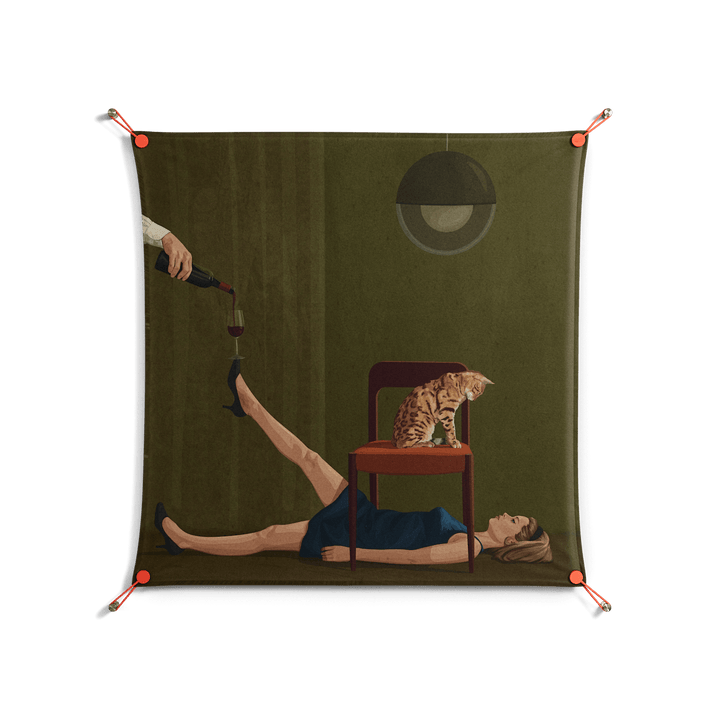 Friday Night Rituals by Kristin Eriksson, printed on premium cotton canvas and displayed with WOW. Work on Wall is Workdeco’s signature frameless suspension system—art floating freely with no frame, no glass, just the work and the wall.