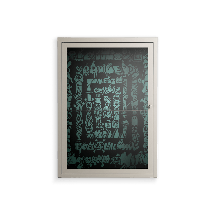 Vitrine pairs artworks by artists, designers, and creatives from around the world with a frame that elevates and displays them in everyday space. The cabinet is built from precision-cut metal with a powder-coated finish — resistant to wear and crafted for stability — making it ideal for both office and home spaces.