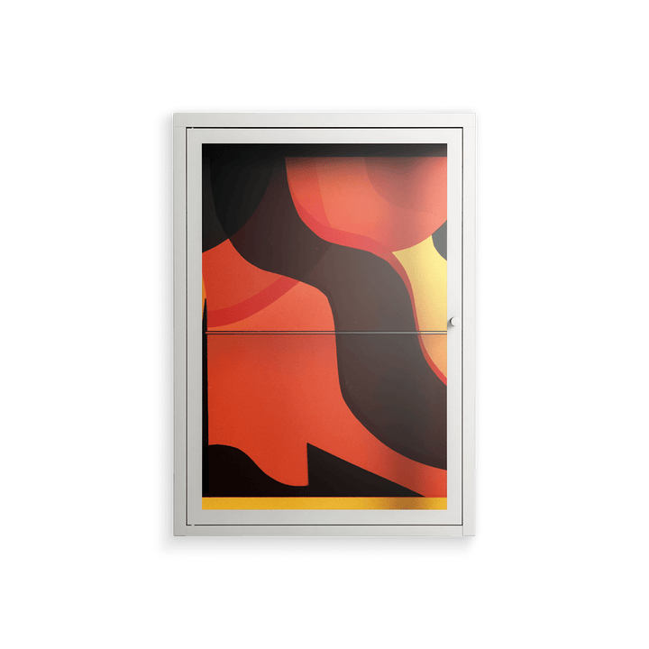 Vitrine pairs artworks by artists, designers, and creatives from around the world with a frame that elevates and displays them in everyday space. The cabinet is built from precision-cut metal with a powder-coated finish — resistant to wear and crafted for stability — making it ideal for both office and home spaces.