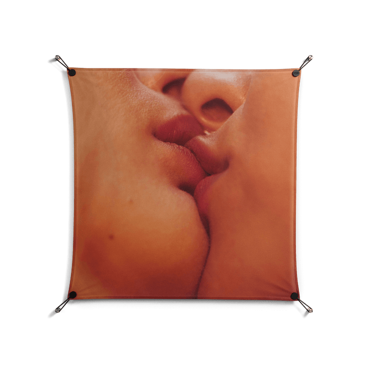 The Art Of Kissing by Nadia Ryder, printed on premium cotton canvas and displayed with WOW. Work on Wall is Workdeco’s signature frameless suspension system—art floating freely with no frame, no glass, just the work and the wall.