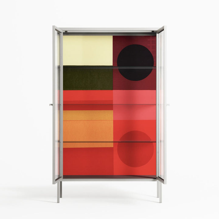Vitrine pairs artworks by artists, designers, and creatives from around the world with a frame that elevates and displays them in everyday space. The cabinet is built from precision-cut metal with a powder-coated finish — resistant to wear and crafted for stability — making it ideal for both office and home spaces.