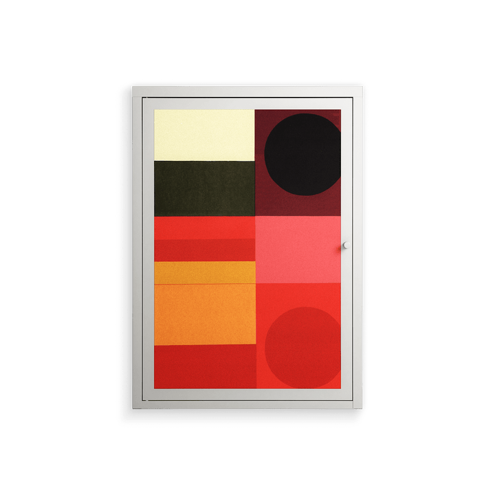 Vitrine pairs artworks by artists, designers, and creatives from around the world with a frame that elevates and displays them in everyday space. The cabinet is built from precision-cut metal with a powder-coated finish — resistant to wear and crafted for stability — making it ideal for both office and home spaces.