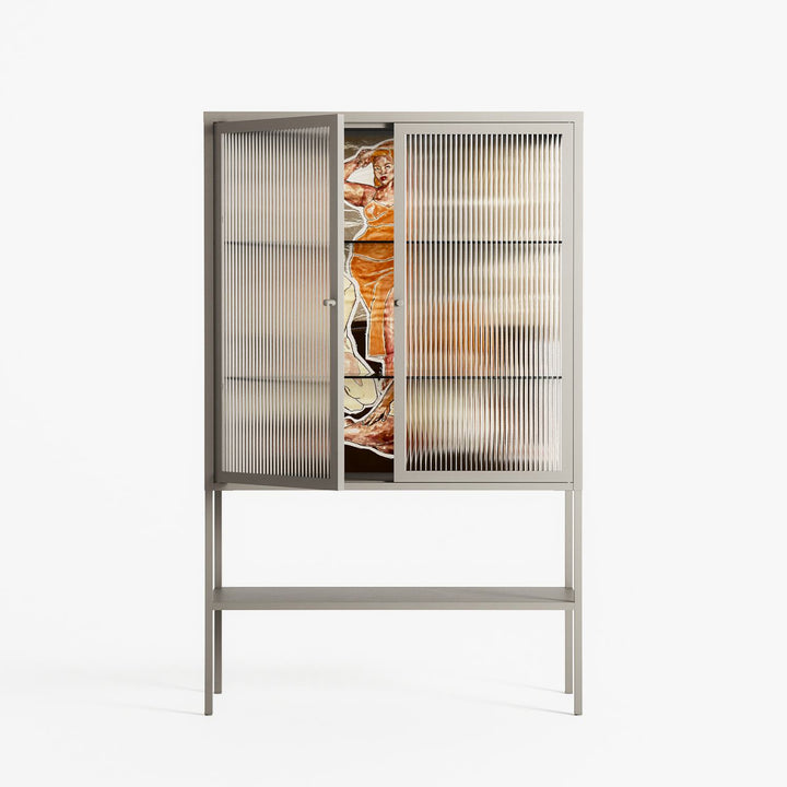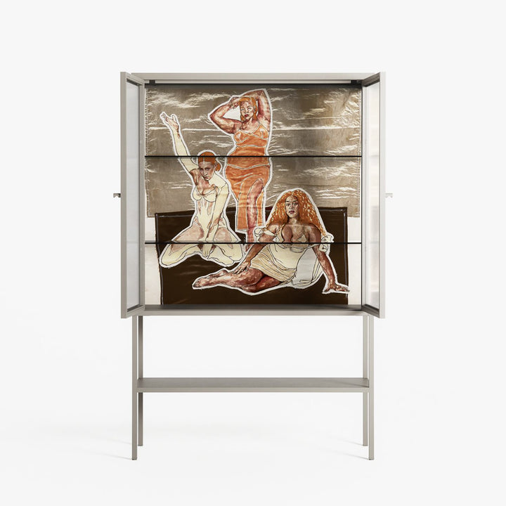 Vitrine pairs artworks by artists, designers, and creatives from around the world with a frame that elevates and displays them in everyday space. The cabinet is built from precision-cut metal with a powder-coated finish — resistant to wear and crafted for stability — making it ideal for both office and home spaces.