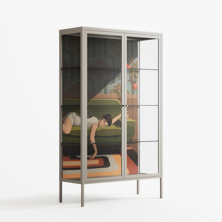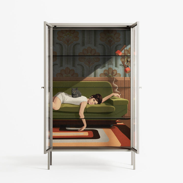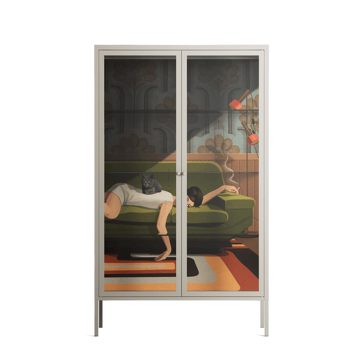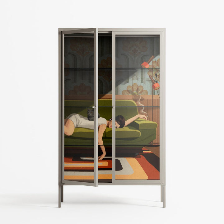 Vitrine pairs artworks by artists, designers, and creatives from around the world with a frame that elevates and displays them in everyday space. The cabinet is built from precision-cut metal with a powder-coated finish — resistant to wear and crafted for stability — making it ideal for both office and home spaces.