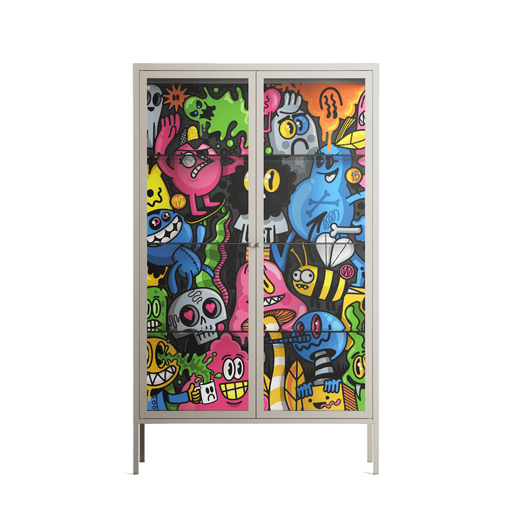 Vitrine pairs artworks by artists, designers, and creatives from around the world with a frame that elevates and displays them in everyday space. The cabinet is built from precision-cut metal with a powder-coated finish — resistant to wear and crafted for stability — making it ideal for both office and home spaces.