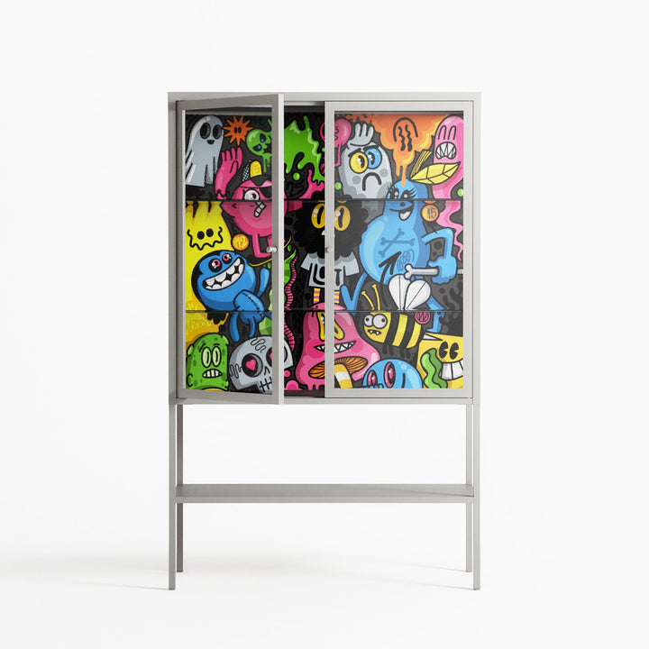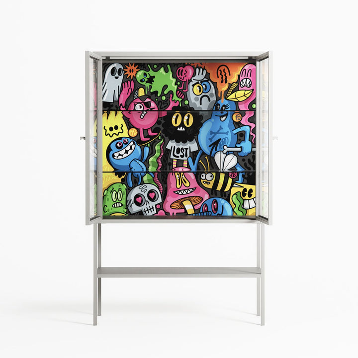 Vitrine pairs artworks by artists, designers, and creatives from around the world with a frame that elevates and displays them in everyday space. The cabinet is built from precision-cut metal with a powder-coated finish — resistant to wear and crafted for stability — making it ideal for both office and home spaces.