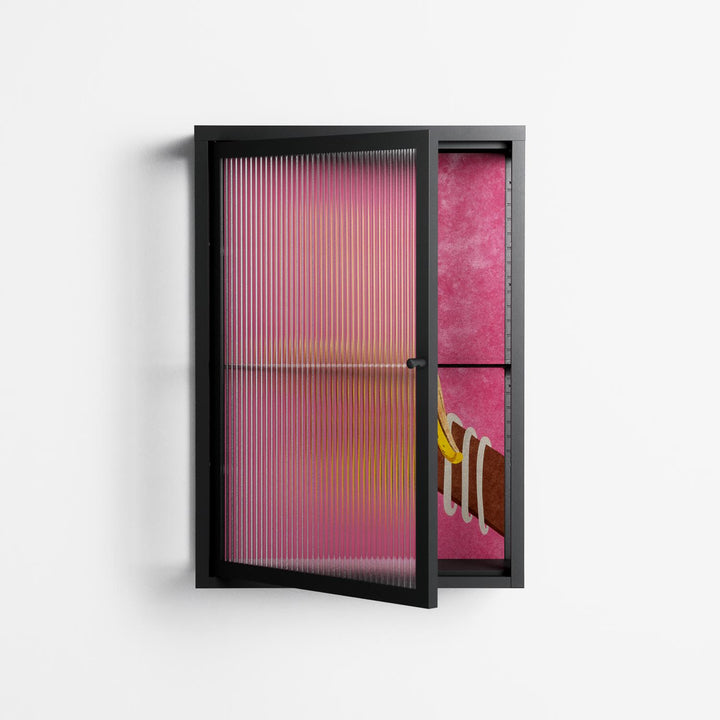 Vitrine pairs artworks by artists, designers, and creatives from around the world with a frame that elevates and displays them in everyday space. The cabinet is built from precision-cut metal with a powder-coated finish — resistant to wear and crafted for stability — making it ideal for both office and home spaces.