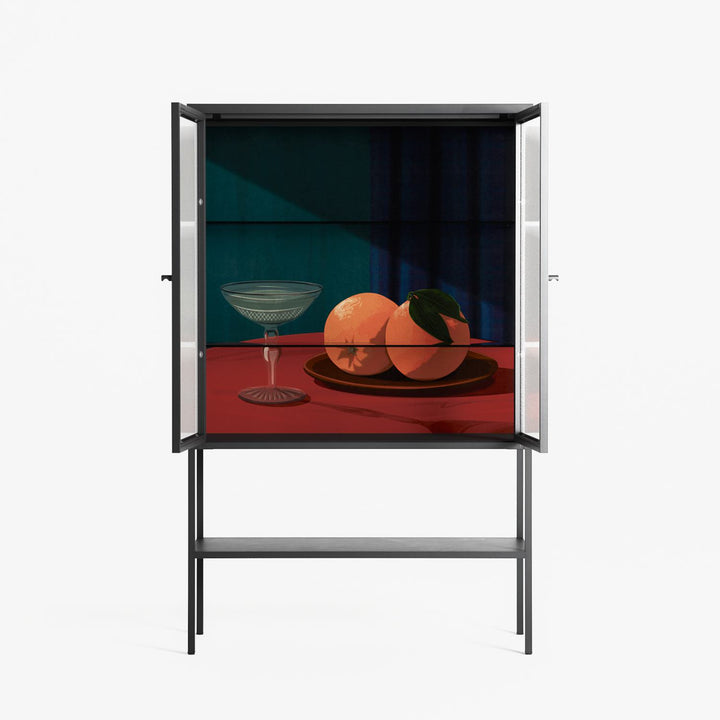 Vitrine pairs artworks by artists, designers, and creatives from around the world with a frame that elevates and displays them in everyday space. The cabinet is built from precision-cut metal with a powder-coated finish — resistant to wear and crafted for stability — making it ideal for both office and home spaces.