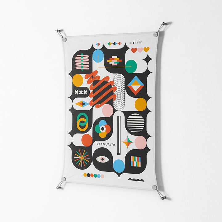 WOW brings together artists, designers, and creatives from around the world, pairing their work with a frameless presentation. The suspension system grips each corner with built-in tension, allowing the artwork to float slightly off the wall, while UV‑resistant printing ensures lasting vibrancy in any space.
