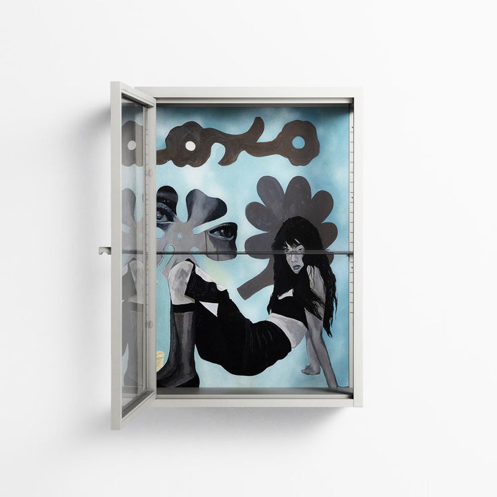 Vitrine pairs artworks by artists, designers, and creatives from around the world with a frame that elevates and displays them in everyday space. The cabinet is built from precision-cut metal with a powder-coated finish — resistant to wear and crafted for stability — making it ideal for both office and home spaces.