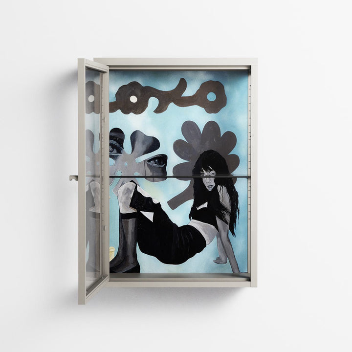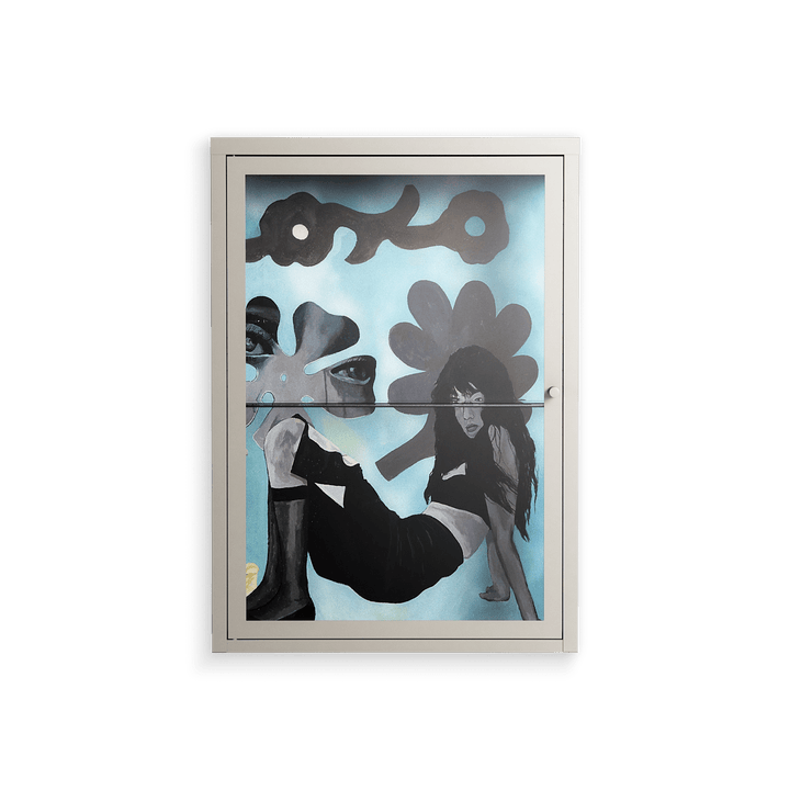 Vitrine pairs artworks by artists, designers, and creatives from around the world with a frame that elevates and displays them in everyday space. The cabinet is built from precision-cut metal with a powder-coated finish — resistant to wear and crafted for stability — making it ideal for both office and home spaces.