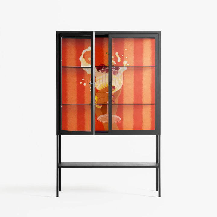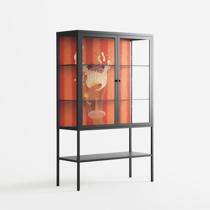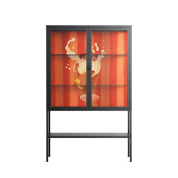 Vitrine pairs artworks by artists, designers, and creatives from around the world with a frame that elevates and displays them in everyday space. The cabinet is built from precision-cut metal with a powder-coated finish — resistant to wear and crafted for stability — making it ideal for both office and home spaces.