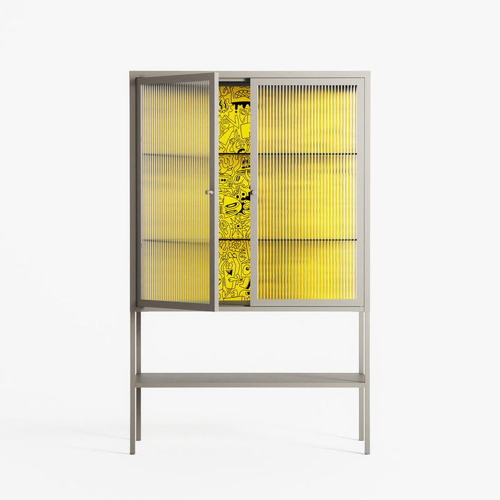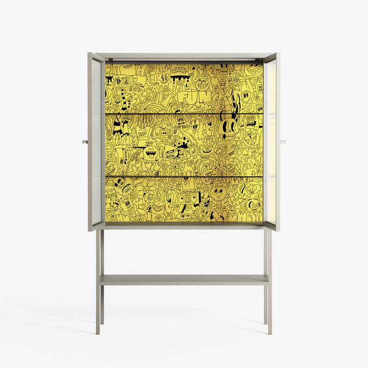 Vitrine pairs artworks by artists, designers, and creatives from around the world with a frame that elevates and displays them in everyday space. The cabinet is built from precision-cut metal with a powder-coated finish — resistant to wear and crafted for stability — making it ideal for both office and home spaces.