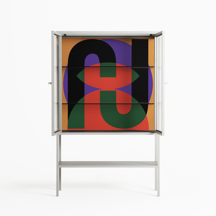 Vitrine pairs artworks by artists, designers, and creatives from around the world with a frame that elevates and displays them in everyday space. The cabinet is built from precision-cut metal with a powder-coated finish — resistant to wear and crafted for stability — making it ideal for both office and home spaces.