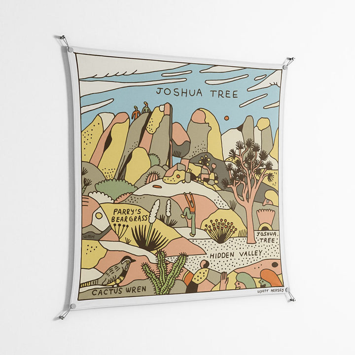 Joshua Tree by Wyatt Hersey, printed on premium cotton canvas and displayed with WOW. Work on Wall is Workdeco’s signature frameless suspension system—art floating freely with no frame, no glass, just the work and the wall.