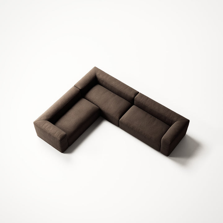 MONOLITH 5-Seat-Corner Left — a familiar form, distilled to its essence. Cubic in character, soft in presence, Monolith captures the sculptural spirit of 1970s Italian design and reinterprets it through considered proportions and contemporary manufacturing.