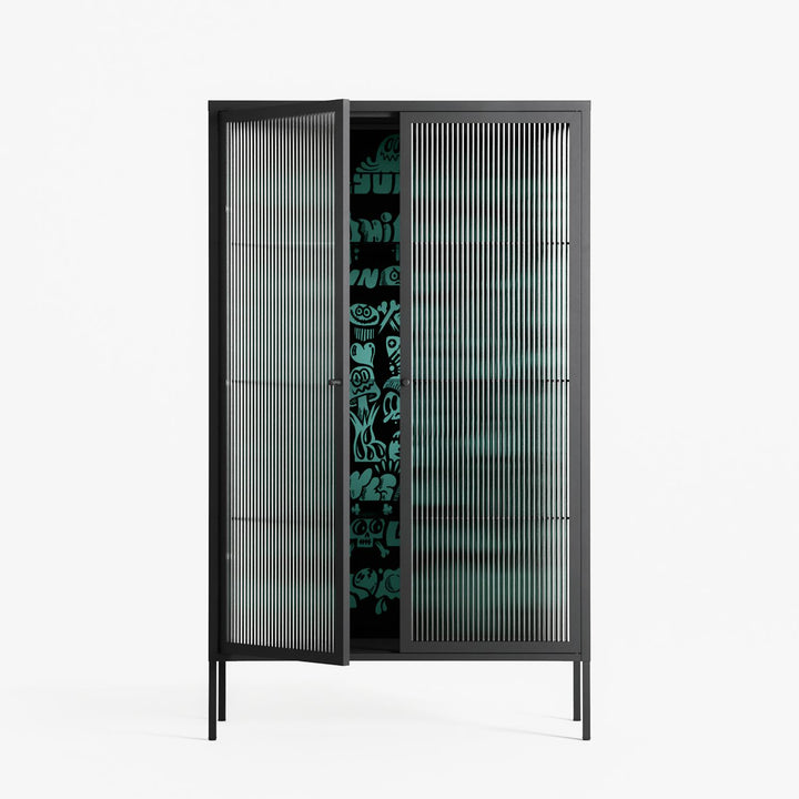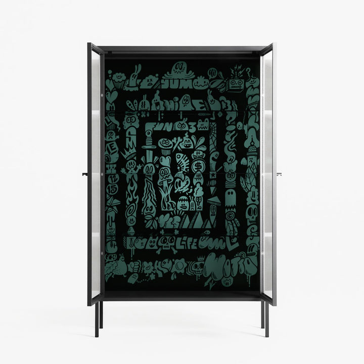 Vitrine pairs artworks by artists, designers, and creatives from around the world with a frame that elevates and displays them in everyday space. The cabinet is built from precision-cut metal with a powder-coated finish — resistant to wear and crafted for stability — making it ideal for both office and home spaces.