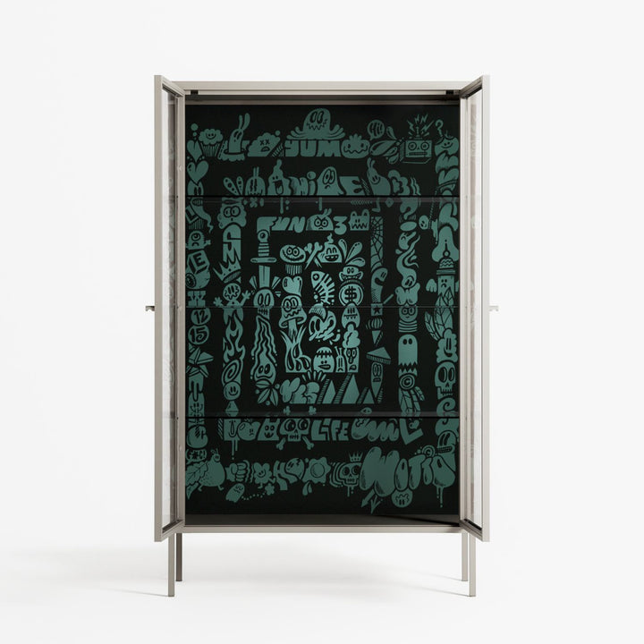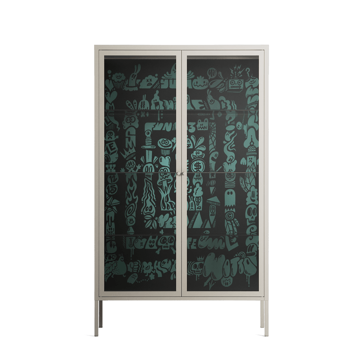 Vitrine pairs artworks by artists, designers, and creatives from around the world with a frame that elevates and displays them in everyday space. The cabinet is built from precision-cut metal with a powder-coated finish — resistant to wear and crafted for stability — making it ideal for both office and home spaces.