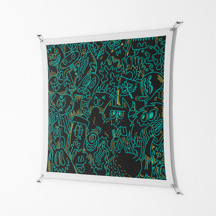 WOW brings together artists, designers, and creatives from around the world, pairing their work with a frameless presentation. The suspension system grips each corner with built-in tension, allowing the artwork to float slightly off the wall, while UV‑resistant printing ensures lasting vibrancy in any space.