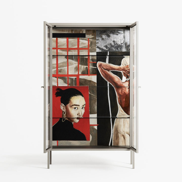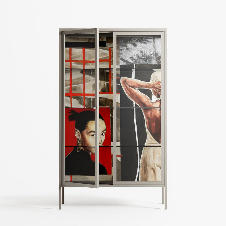 Vitrine pairs artworks by artists, designers, and creatives from around the world with a frame that elevates and displays them in everyday space. The cabinet is built from precision-cut metal with a powder-coated finish — resistant to wear and crafted for stability — making it ideal for both office and home spaces.
