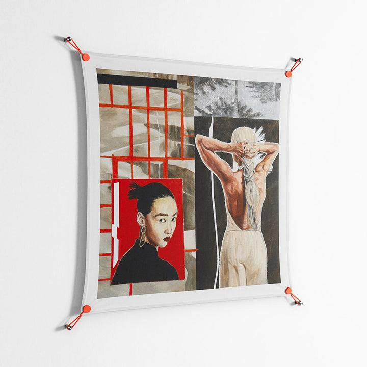 WOW brings together artists, designers, and creatives from around the world, pairing their work with a frameless presentation. The suspension system grips each corner with built-in tension, allowing the artwork to float slightly off the wall, while UV‑resistant printing ensures lasting vibrancy in any space.
