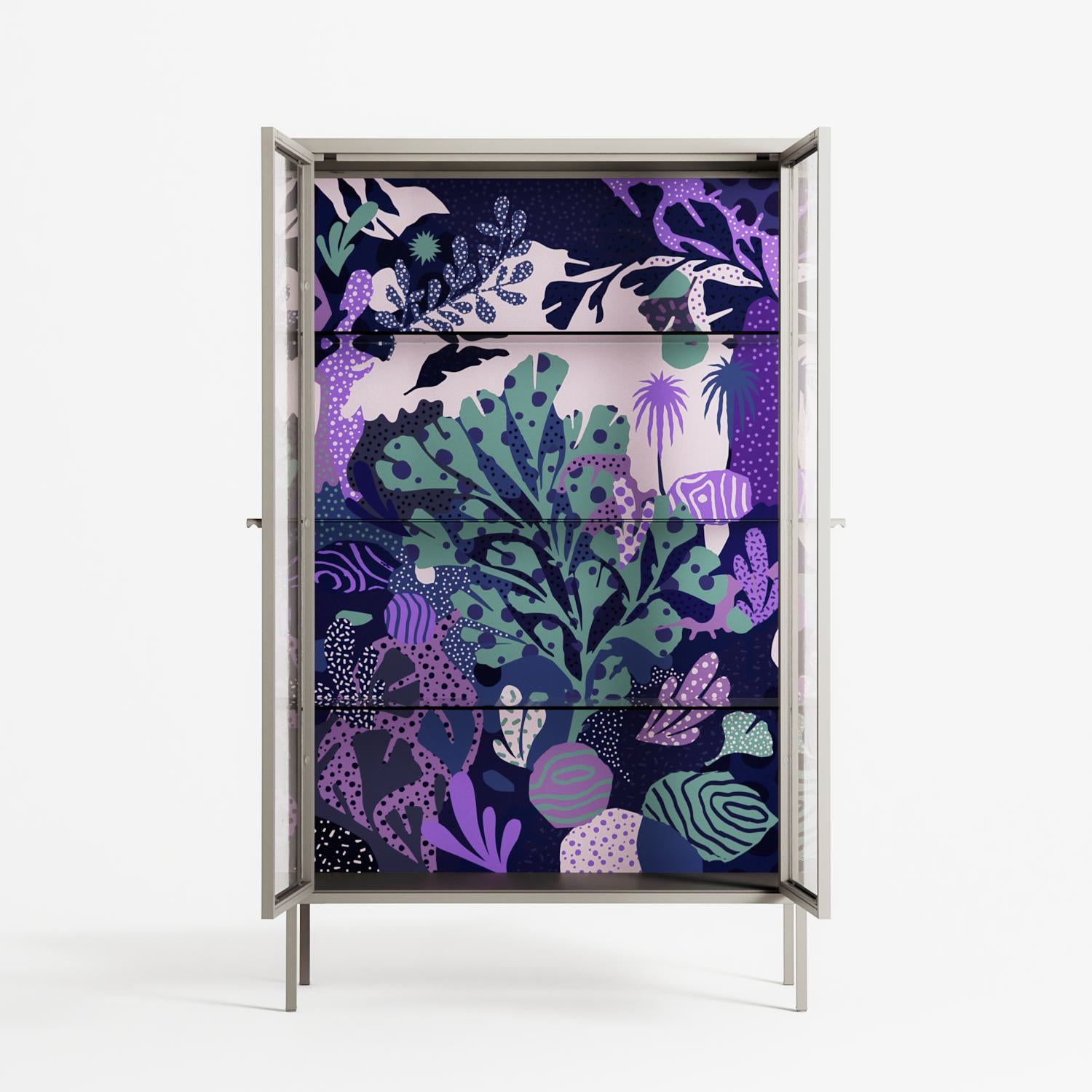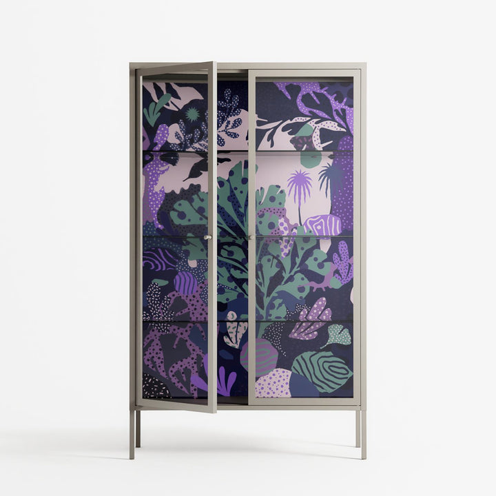 Vitrine pairs artworks by artists, designers, and creatives from around the world with a frame that elevates and displays them in everyday space. The cabinet is built from precision-cut metal with a powder-coated finish — resistant to wear and crafted for stability — making it ideal for both office and home spaces.