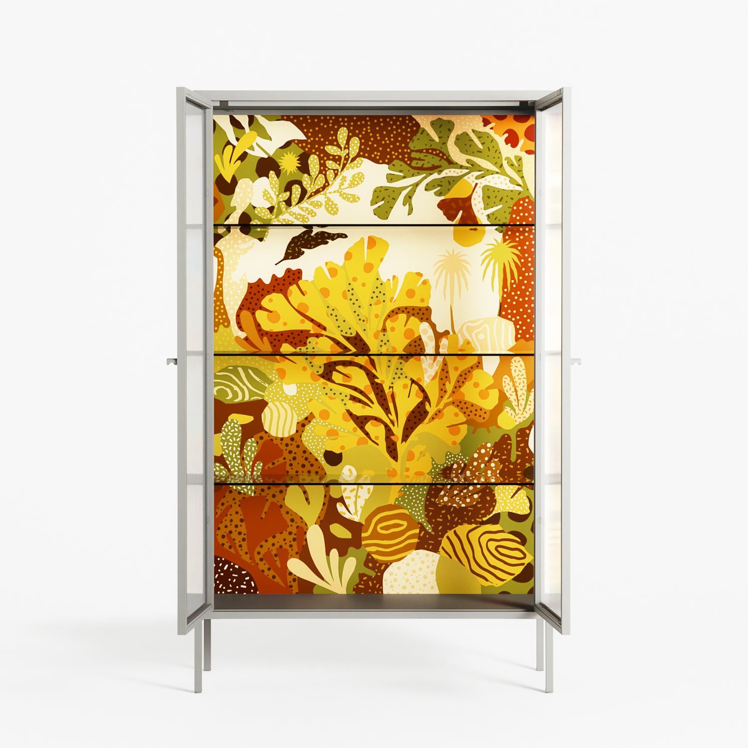 Vitrine pairs artworks by artists, designers, and creatives from around the world with a frame that elevates and displays them in everyday space. The cabinet is built from precision-cut metal with a powder-coated finish — resistant to wear and crafted for stability — making it ideal for both office and home spaces.