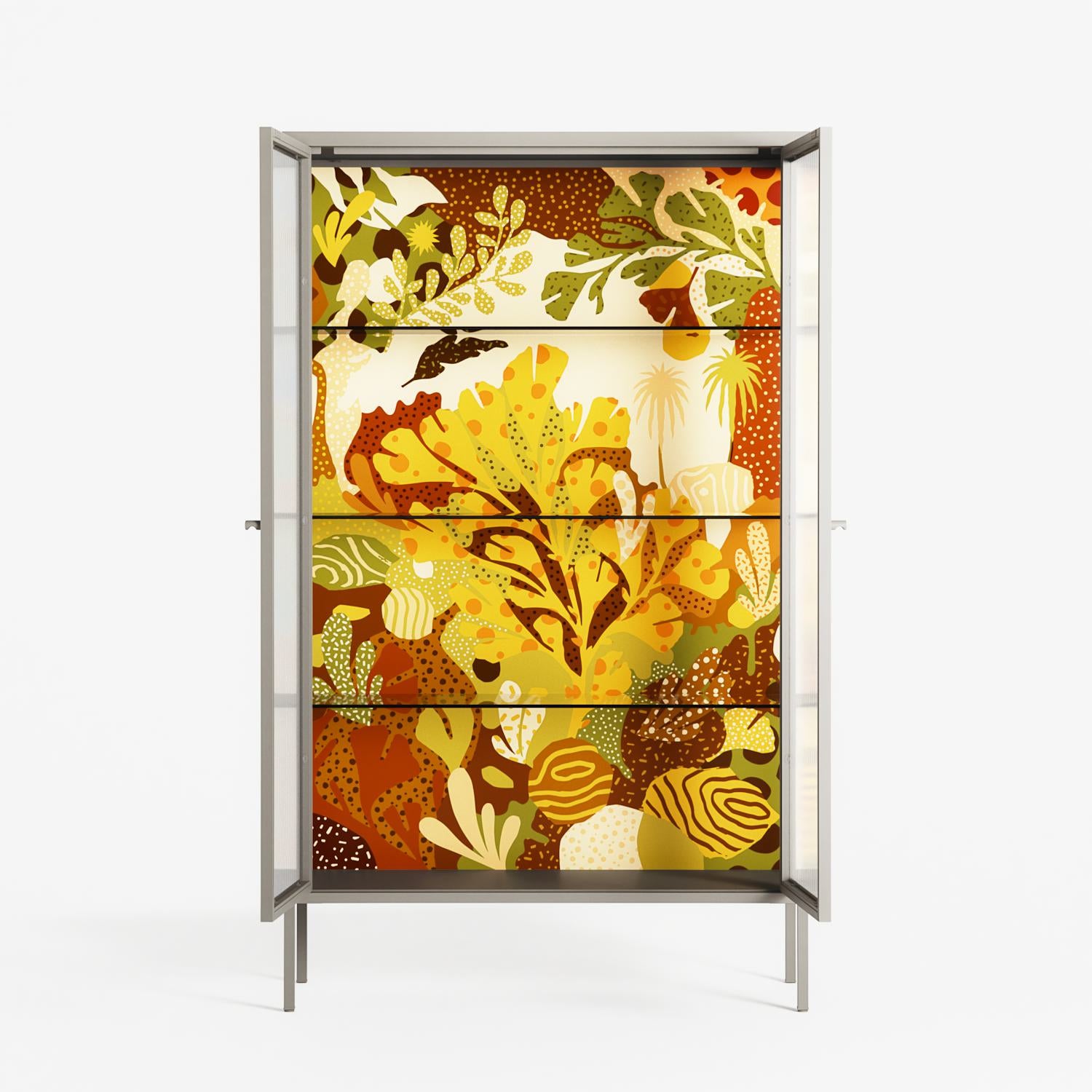 Vitrine pairs artworks by artists, designers, and creatives from around the world with a frame that elevates and displays them in everyday space. The cabinet is built from precision-cut metal with a powder-coated finish — resistant to wear and crafted for stability — making it ideal for both office and home spaces.
