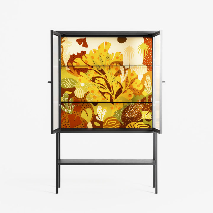 Vitrine pairs artworks by artists, designers, and creatives from around the world with a frame that elevates and displays them in everyday space. The cabinet is built from precision-cut metal with a powder-coated finish — resistant to wear and crafted for stability — making it ideal for both office and home spaces.