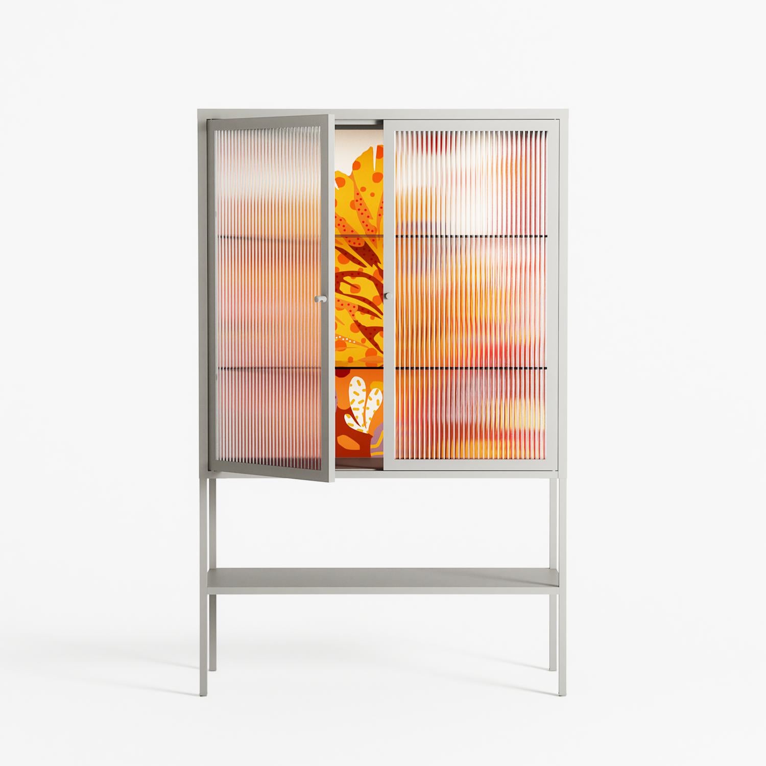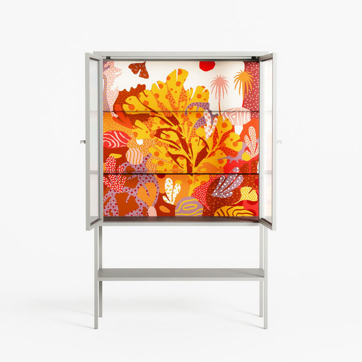 Vitrine pairs artworks by artists, designers, and creatives from around the world with a frame that elevates and displays them in everyday space. The cabinet is built from precision-cut metal with a powder-coated finish — resistant to wear and crafted for stability — making it ideal for both office and home spaces.