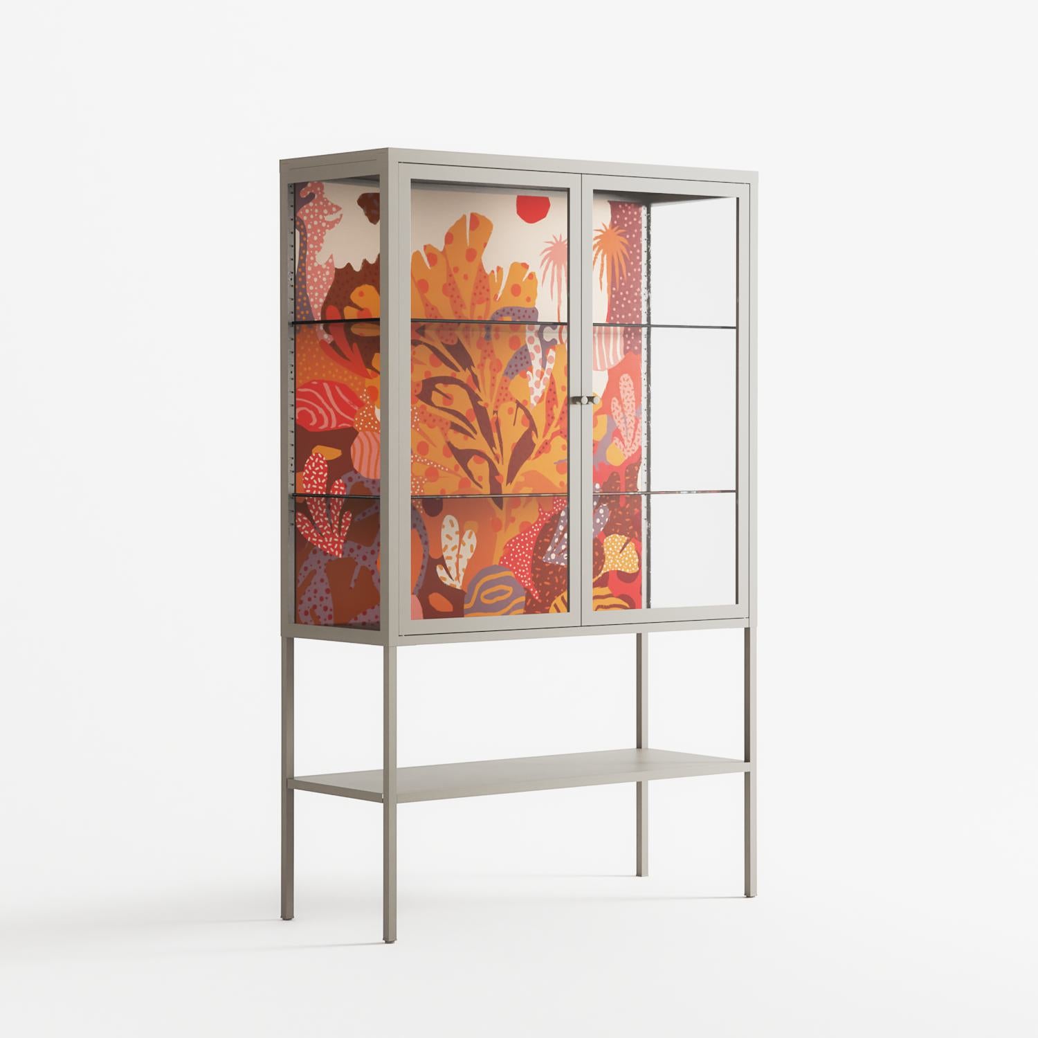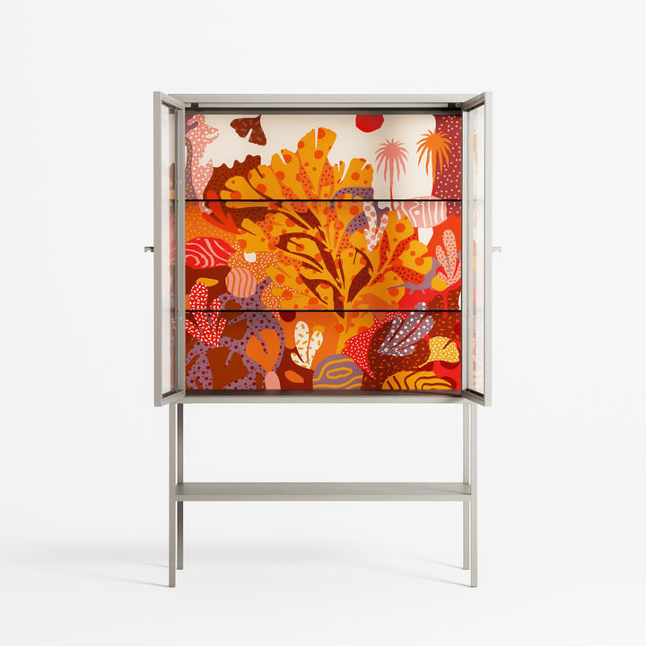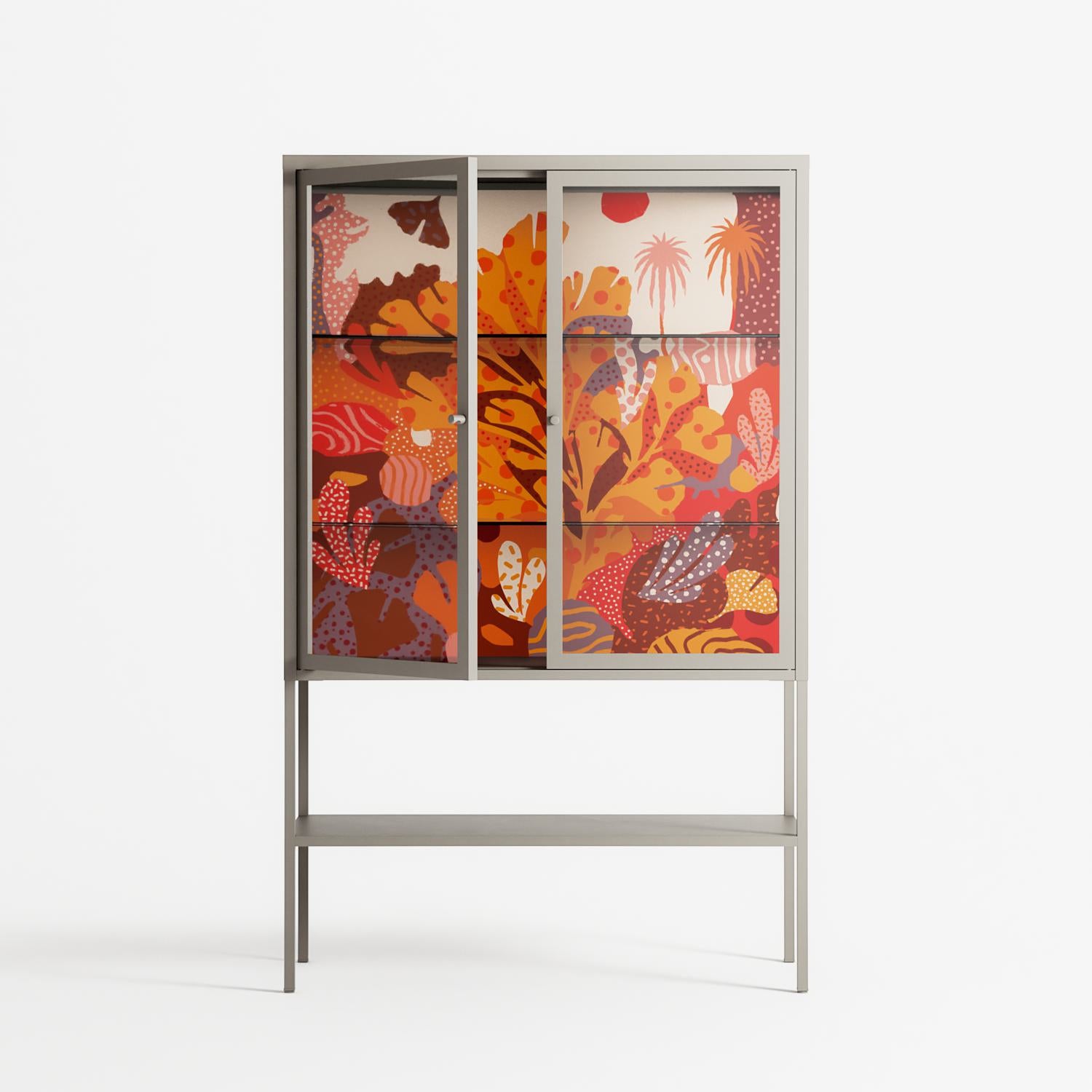 Vitrine pairs artworks by artists, designers, and creatives from around the world with a frame that elevates and displays them in everyday space. The cabinet is built from precision-cut metal with a powder-coated finish — resistant to wear and crafted for stability — making it ideal for both office and home spaces.