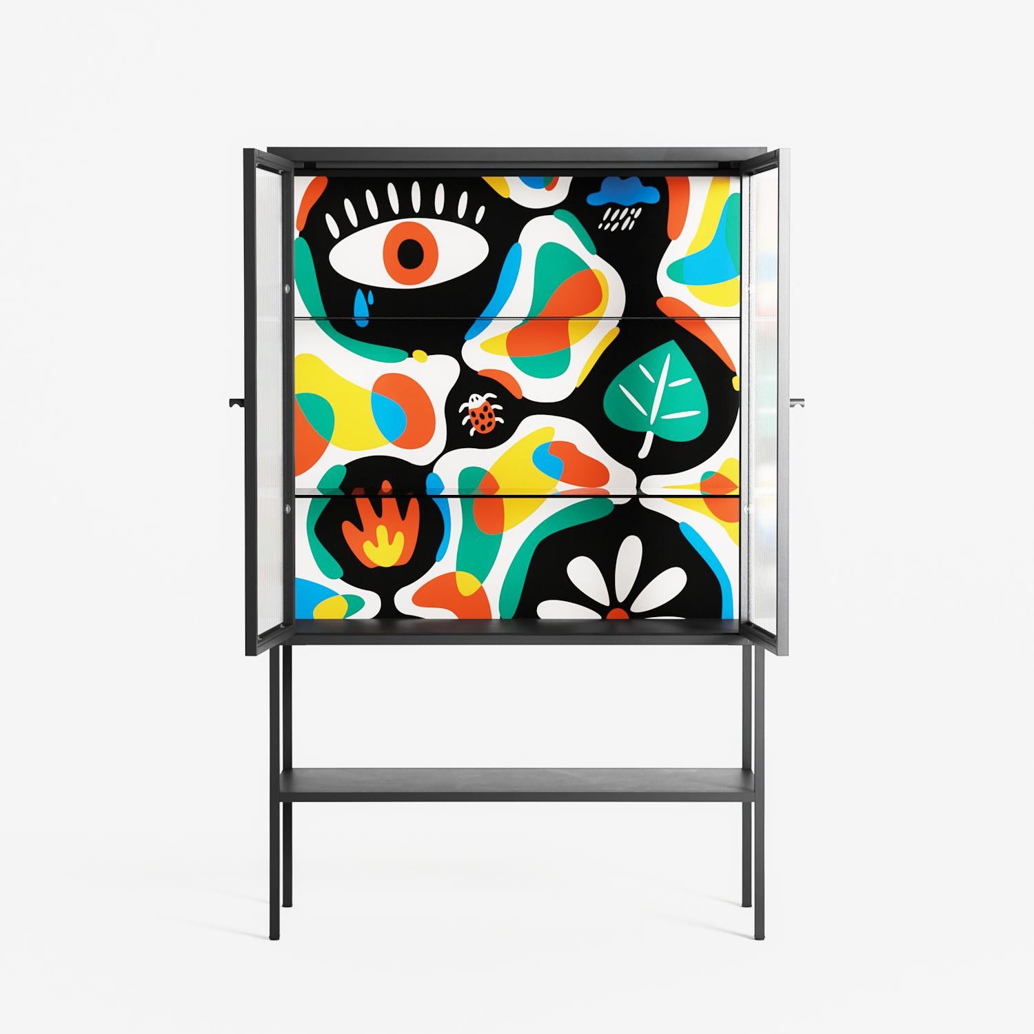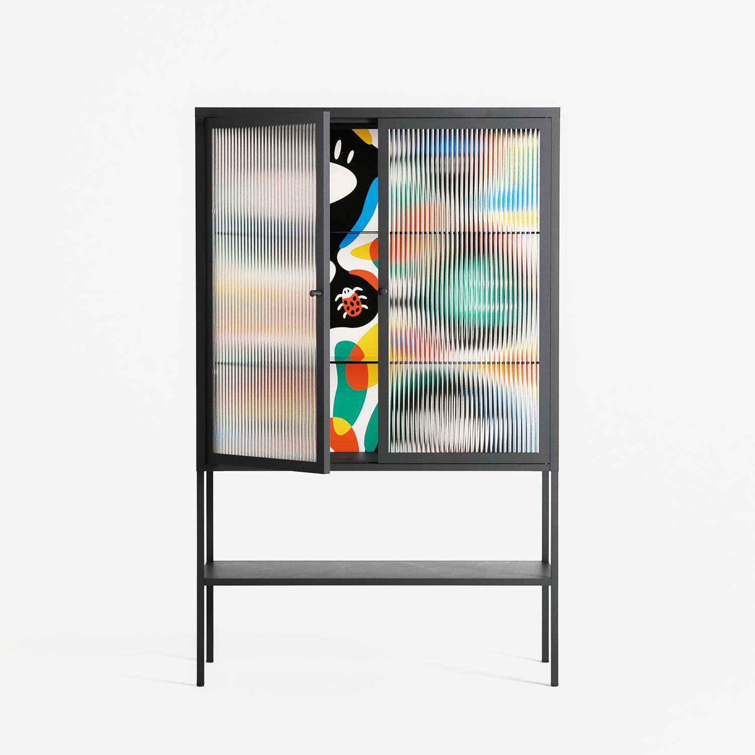 Vitrine pairs artworks by artists, designers, and creatives from around the world with a frame that elevates and displays them in everyday space. The cabinet is built from precision-cut metal with a powder-coated finish — resistant to wear and crafted for stability — making it ideal for both office and home spaces.