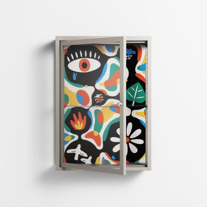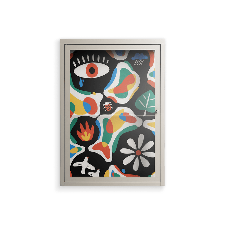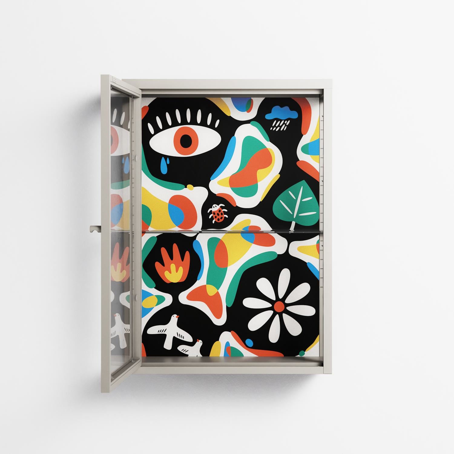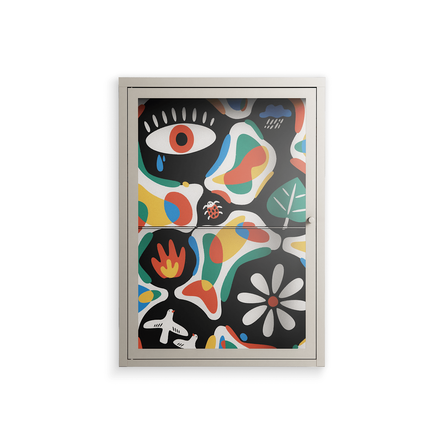 Vitrine pairs artworks by artists, designers, and creatives from around the world with a frame that elevates and displays them in everyday space. The cabinet is built from precision-cut metal with a powder-coated finish — resistant to wear and crafted for stability — making it ideal for both office and home spaces.