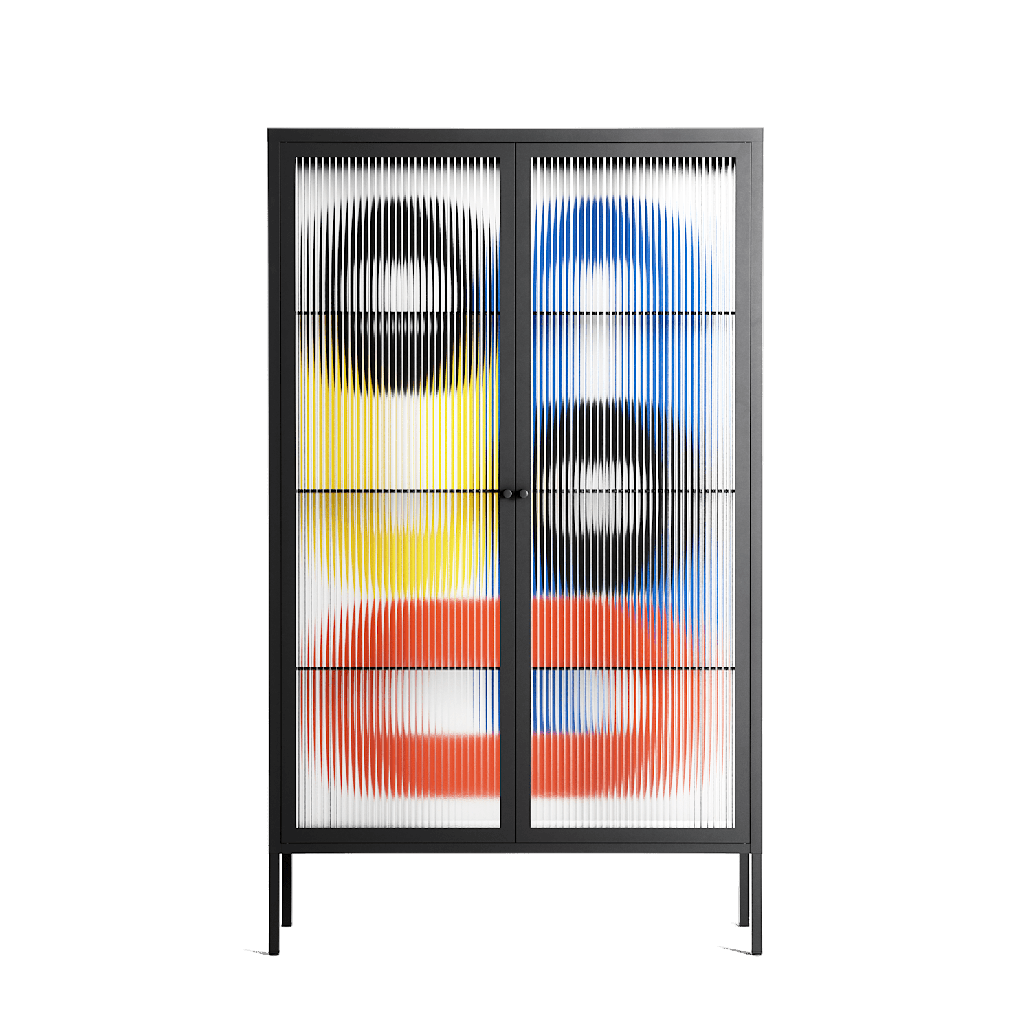 Vitrine pairs artworks by artists, designers, and creatives from around the world with a frame that elevates and displays them in everyday space. The cabinet is built from precision-cut metal with a powder-coated finish — resistant to wear and crafted for stability — making it ideal for both office and home spaces.